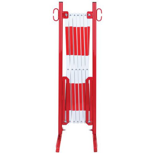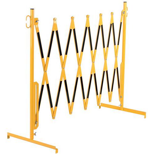 Barrera ampliable de acero con patas en los 2 lados que permite bloquear temporalmente una zona peligrosa. La alternancia de los colores atrae la atención de los usuarios e indica peligros. Posibilidad de conectar varias barreras entre ellas. Ocupa poco espacio cuando se pliega. Certificado TÜV.