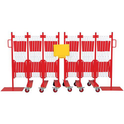Composición: 2 barreras extensibles de acero (2 x 2 m o 2 x 8 m) y 1 elemento de unión.
