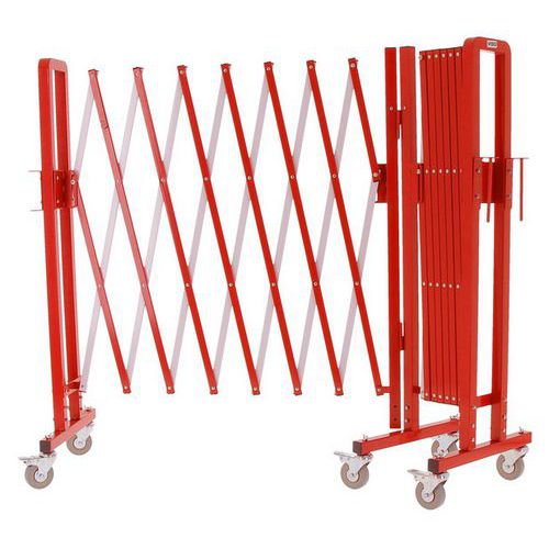 | Nombre del producto | Barrera extensible de metal con ruedas, Uso: Obra Manutención interior/exterior, Color: Rojo/blanco |
