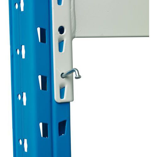 Balda adicional para utilizarla combinada con la estantería Epsivol Su montante con pie asegura la estabilidad de su estantería en el suelo.