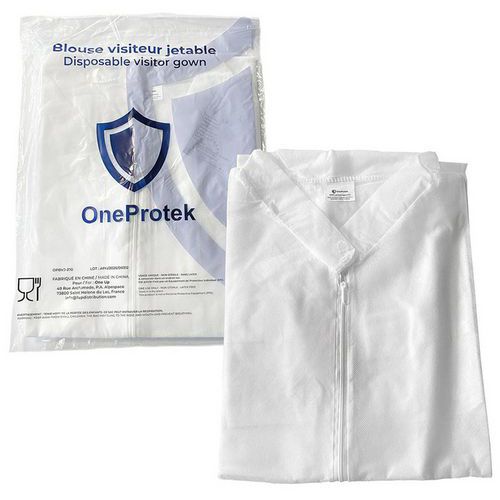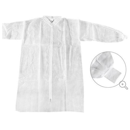 | Nombre del producto | Bata blanca desechable con cremallera para visitantes, Tipo de ropa: Surblouse, Materia: Polipropileno |