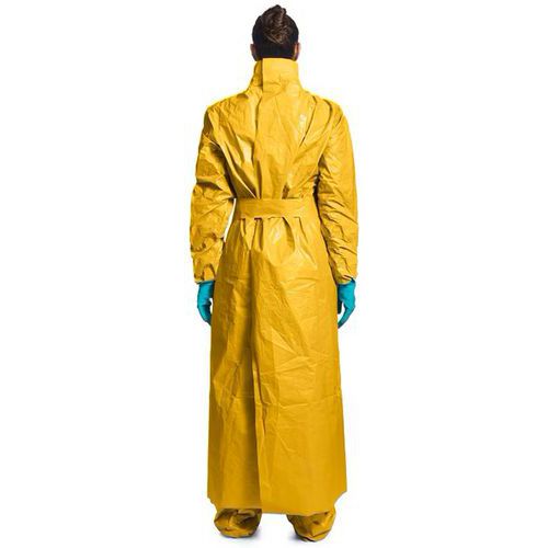 Bata de mangas largas Tychem 2000 C que cubre las piernas hasta las pantorrillas.