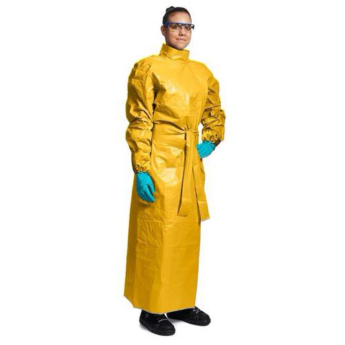 Bata de mangas largas Tychem 2000 C que cubre las piernas hasta las pantorrillas.