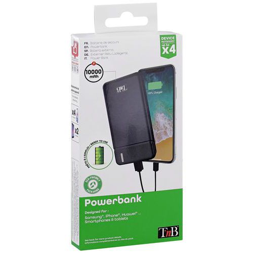 | Nombre del producto | Batería portátil, Capacidad (eláctrica): 10000 mAh, Color: Negro, Ancho: 6.8 cm, Altura: 14.3 cm |
