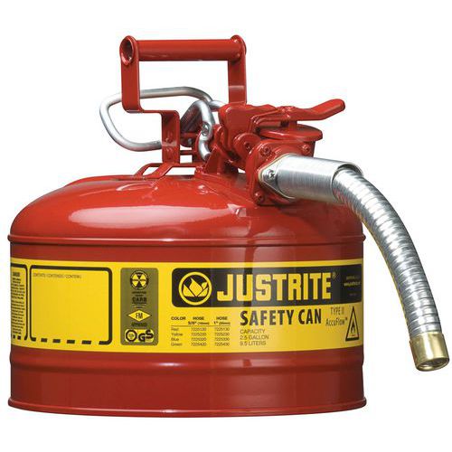 Bidón de seguridad con tubo metálico flexible para controlar el caudal de líquido con toda seguridad.