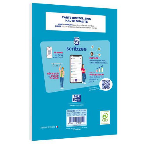 | Nombre del producto | Bloc de 30 fichas brístol 148 x 210 perforadas con puntos, Gramaje: 210 g/m², N.º de hojas/resmilla: 30 |