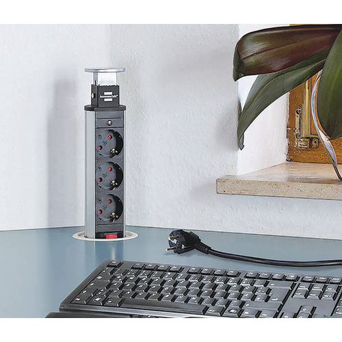 | Nombre del producto | Bloque plegable taller 3 tomas 2 USB, Interruptor: sí, N.º de tomas: 3, Tensión: 230 V, Potencia máx.: 3600 W |