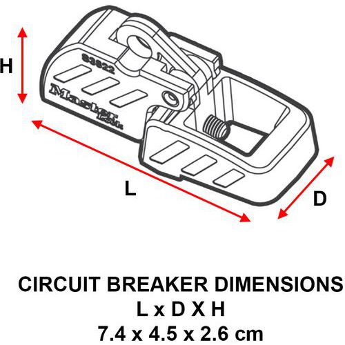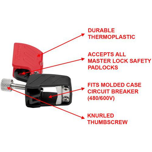 - El bloqueo de disyuntor Master Lock S3822 Grip Tight™ es adecuado para interruptores diferenciales de caja moldeada (480/600 V).