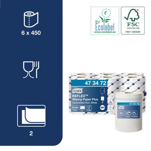Bobina de papel de vaciado central Tork Reflex Plus, Color: Blanco, Tipo de producto: Rollo de papel. Bobina de papel de vaciado central Tork Reflex Plus, Color: Blanco, Tipo de producto: Rollo de papel.