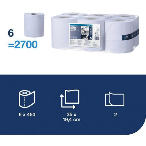 | Nombre del producto | Bobina de secado con dispensación central Tork, Color: Azul, Tipo: Sistema M2, Nº de pliegues: 2 |