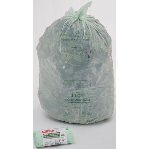 | Nombre del producto | Bolsa de basura compostable para residuos orgánicos 110 L, Capacidad: 110 L, Espesor: 32 µm, Altura: 1100 mm |