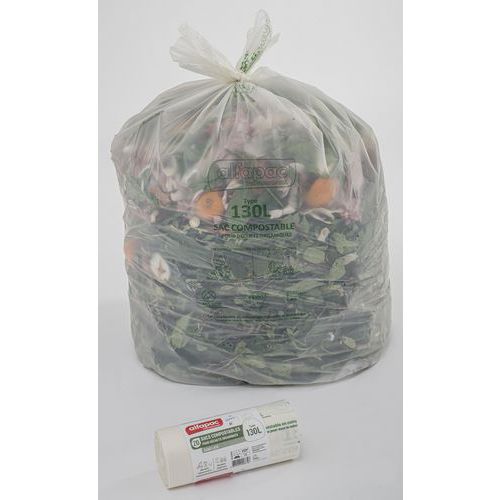 | Nombre del producto | Bolsa de basura compostable para residuos orgánicos 130 L, Capacidad: 130 L, Espesor: 32 µm, Altura: 1150 mm |