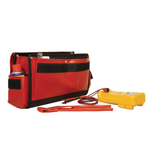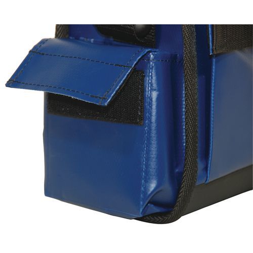 Composición: -1 bolsillo frontal - 2 bolsillos laterales - 1 tabique portaherramientas con alvéolos - 1 cerradura con por solapa autoadherente - 1 empuñadura - 1 correa
