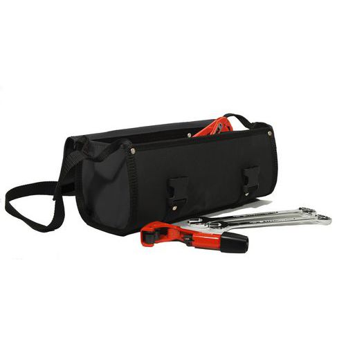 Composición: - 1 cierre con solapa flexible y 2 cierres - 1 gran compartimento para almacenar herramientas - 1 asa central para el transporte en la mano - 2 asas laterales para el transporte en la mano - 1 correa para el transporte al hombro