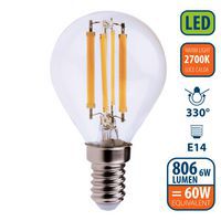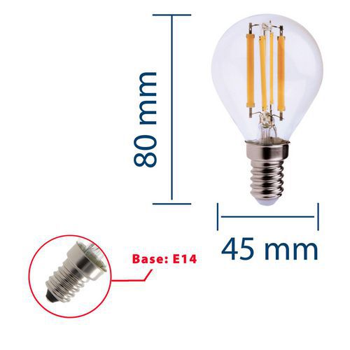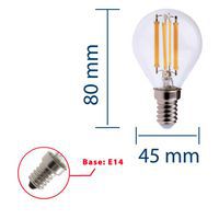 Bombilla LED de filamento miniesférica P45 de 6 W, Flujo luminoso: 806 lm, Tipo de casquillo: E14