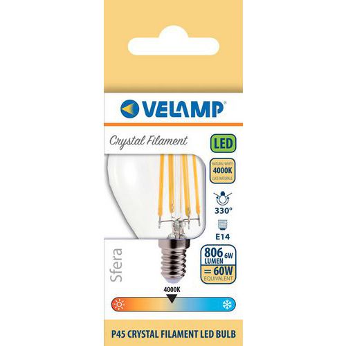 Bombilla LED de filamento miniesférica P45 de 6 W - VELAMP