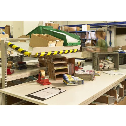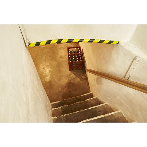 El borde protector puede fijarse en cualquier esquina. Se instala en los bordes que pueden causar lesiones (descenso al sótano, bajo el techo inclinado, vigas en un ático o sótano, etc.). Su color le proporciona una excelente visibilidad.