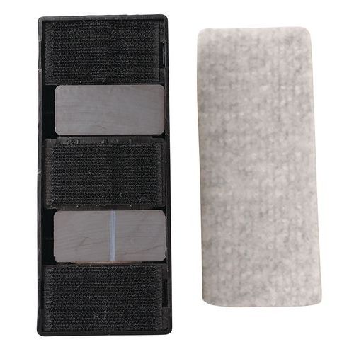 - Borrador magnético para eliminar fácilmente la tinta y la suciedad en pizarras blancas.
