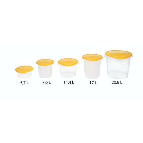 Contenedor de almacenamiento redondo que permite una mejor circulación del aire entre los alimentos. Ventilación natural eficaz para enfriar en el refrigerador o en el congelador. Contenedor encajable en vacío y apilable lleno para un almacenamiento óptimo. Cubeta de almacenamiento de fácil mantenimiento y con total seguridad en cualquier lavavajillas. Práctico y eficaz con pequeñas asas a ambos lados para una sujeción sencilla.