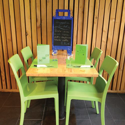 Caballete de señalización recubierto de una película de pizarra o blanca para uso en interiores y exteriores.