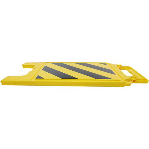 | Nombre del producto | Caballete de señalización con franjas, Color: Negro, Altura: 600 mm, Ancho: 275 mm, Espesor plegado: 23 mm |