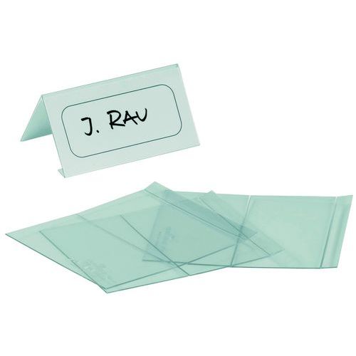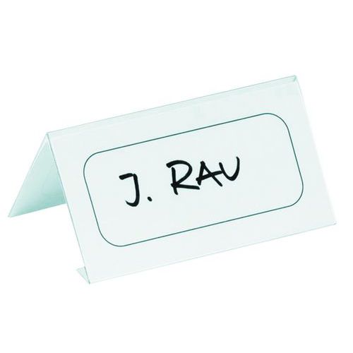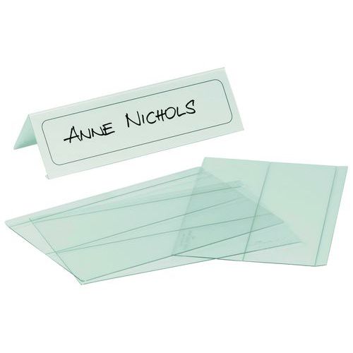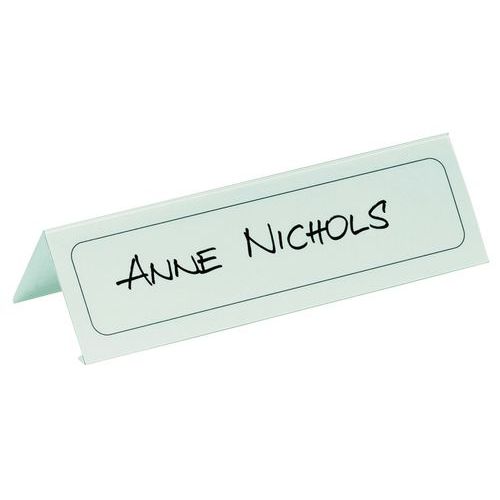 | Nombre del producto | Caballete portanombre en PET, Altura: 61 mm, Material: Plástico, Embalaje reciclable: Sí - 100% |