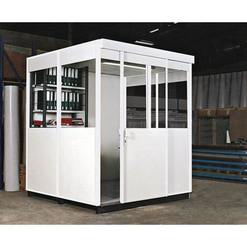 Instalación sencilla: puesto de trabajo auxiliar desplazable. Manejo rápido gracias al suelo que permite la paletización. Las puertas solo se abren hacia fuera. Fabricado en la UE Garantía al cliente : 3 años
