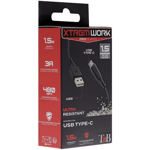 | Nombre del producto | Cable USB/USB-C XTREMWORK, Color: Negro/gris, Embalaje reciclable: Sí - 100%, Longitud: 1.50 m |