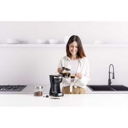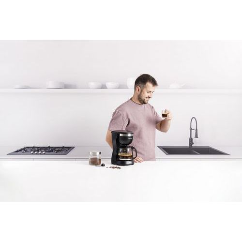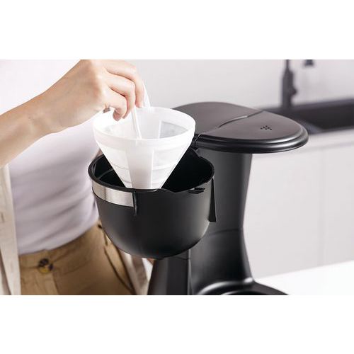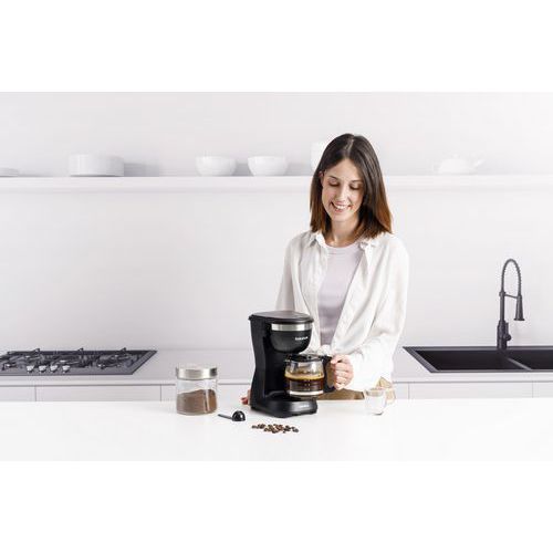 Cafetera de filtro Verona de 6 - 12 tazas con placa calefactora que mantiene el café a una temperatura agradable durante varias horas. La jarra de cristal permite ver fácilmente cuánto café queda y tiene un aspecto más atractivo. El filtro permanente es económico y respetuoso con el medio ambiente, puesto que no hay que sustituir los filtros con regularidad. Gracias al depósito con nivel de agua visible, se facilita el llenado y se evitan derrames. Después de 40 minutos se apaga automáticamente, una característica de seguridad adicional que evita el sobrecalentamiento y permite ahorrar energía. El indicador luminoso de encendido muestra claramente si la cafetera está en funcionamiento, lo que resulta cómodo y seguro.