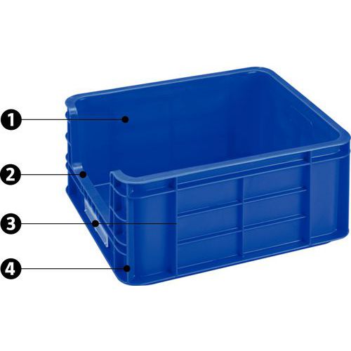 - Caja apilable de paredes lisas: limpieza fácil garantizada.