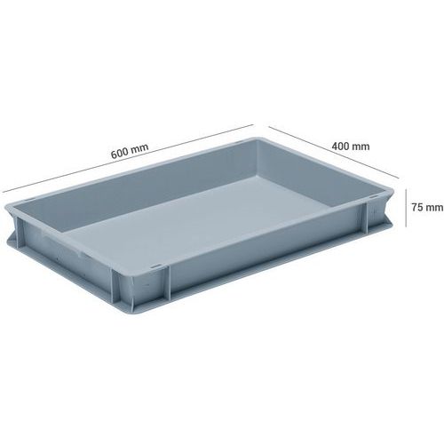 | Nombre del producto | Caja apilable norma Europa color gris RAKO, Capacidad: 14 L, Apilable: sí, Altura total: 75 mm |