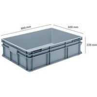 | Nombre del producto | Caja apilable norma Europa color gris RAKO, Capacidad: 90 L, Apilable: sí, Altura total: 220 mm |