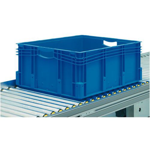 Caja apilable muy robusta gracias a su fondo doble. Asas ergonómicas abiertas que facilitan el mantenimiento. Muy estable al apilarla gracias a sus rebordes reforzados. Caja de alta resistencia ante fuertes variaciones de temperatura. Fabricado en Alemania Carga máx. (kg) : 200