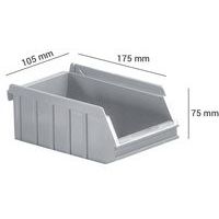 Caja con abertura frontal apilable, Capacidad: 1 L, Material: Plástico, Longitud total: 175 mm