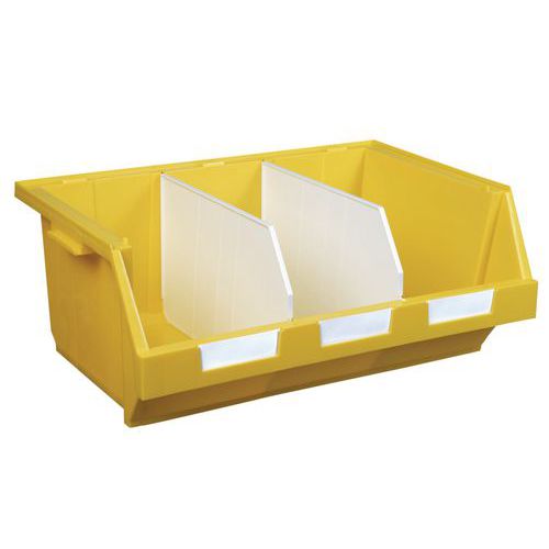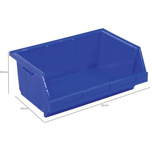 Resistencia muy grande a la carga. Caja con abertura frontal para picking, apilable y encajable con otras cajas del mismo modelo. Asa en el lateral para facilitar el transporte. Encajable con otras cajas con asa lateral. Fácil de identificar mediante un portaetiquetas doble. Fabricado en la UE Carga máx. (kg) : 200 Garantía al cliente : 3 años