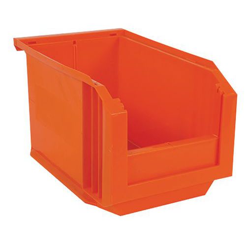 Gran solidez gracias a sus dobles paredes y nervaduras de refuerzo. Caja con abertura frontal European resistente a los golpes, incluso con un uso intensivo. Fácil de identificar mediante un gran portaetiquetas. Fabricado en la UE Carga máx. (kg) : 10 Garantía al cliente : 3 años
