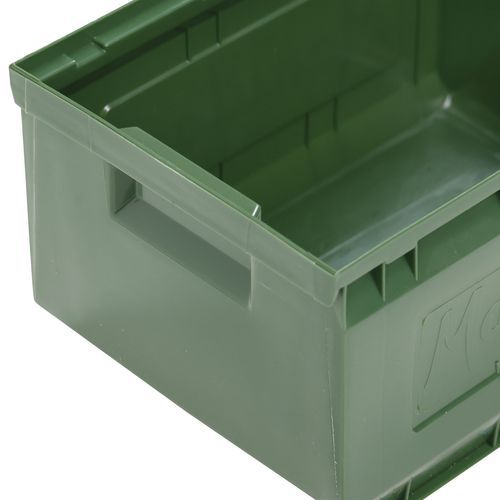 Rebordes con topes para una estabilidad del apilado. Gran robustez gracias a sus nervaduras laterales. Fondo plano y antideslizante para facilitar el agarre. Excelente agarre gracias al asa delantera. Cubeta plástica de alta resistencia a los choques. Fácil de identificar gracias al portaetiquetas. Fabricado en la UE