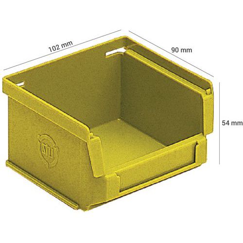 Ideal para el almacenamiento de piezas pequeñas. Tapa translúcida y sistema portaetiquetas disponible para cada caja con abertura frontal. Apilable con y sin tapa Adecuado para todos los sectores de actividad: industrial, automotriz, farmacéutica, de distribución... Fabricado en la UE