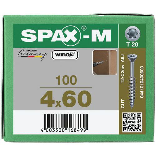 | Nombre del producto | Caja de 100 tornillos universales de cabeza avellanada para paneles de MDF, Material: Acero, Roscas Ø: 4 mm |