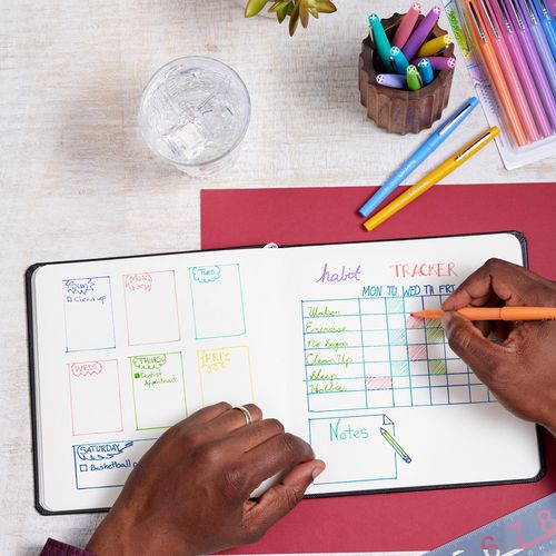 Rotuladores para colorear Paper Mate® Flair, punta media (0,7 mm), tinta turquesa, caja de 12. Tinta a base de agua que no traspasa el papel para que su escritura permanezca intacta. Resiste las manchas y la decoloración para una página hermosa y limpia .