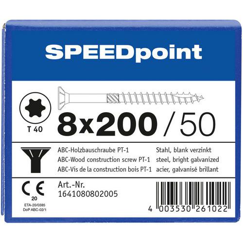 Caja de 50 tornillos de cabeza avellanada para madera TX Ø 8 mm - SpeedPoint