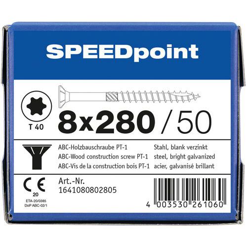 Caja de 50 tornillos de cabeza avellanada para madera TX Ø 8 mm - SpeedPoint