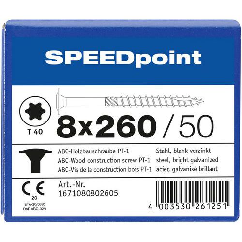 Caja de 50 tornillos de cabeza plana para madera TX Ø 8 mm - SpeedPoint