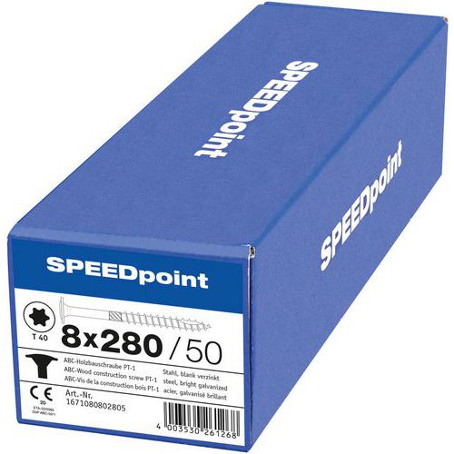 Caja de 50 tornillos de cabeza plana para madera TX Ø 8 mm - SpeedPoint