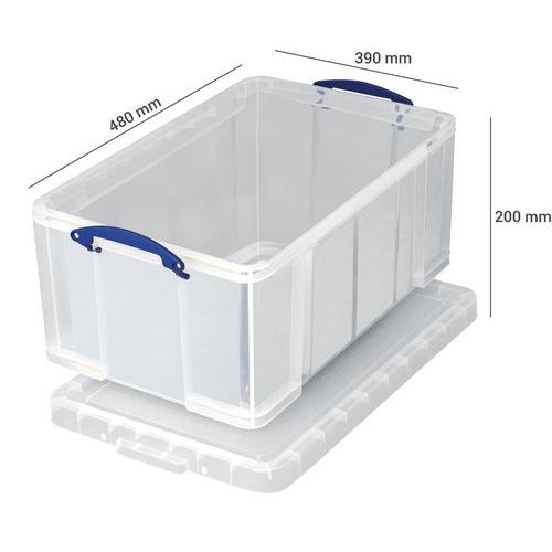 Identificación rápida del contenido gracias a su estructura translúcida. Completamente reforzado: gran resistencia a la carga y al aplastamiento. Apilable con o sin tapa entre cajas de las mismas dimensiones. Protección del contenido contra el polvo y la humedad. Fácil de transportar mediante sus largas asas. Zona para etiquetas autoadhesivas. Fabricado en el UK Garantía al cliente : 3 años Carga máx. (kg) : 80 kg