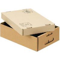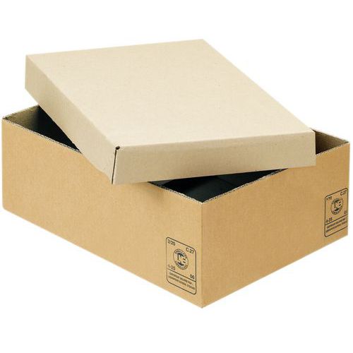 Buena resistencia al apilamiento. Caja de cartón sin solapa. Adherencia perfecta de las cintas adhesivas. Resistencia al desprendimiento. Formato paletizable. Ámbitos de aplicación: todos los sectores, incluida la automoción