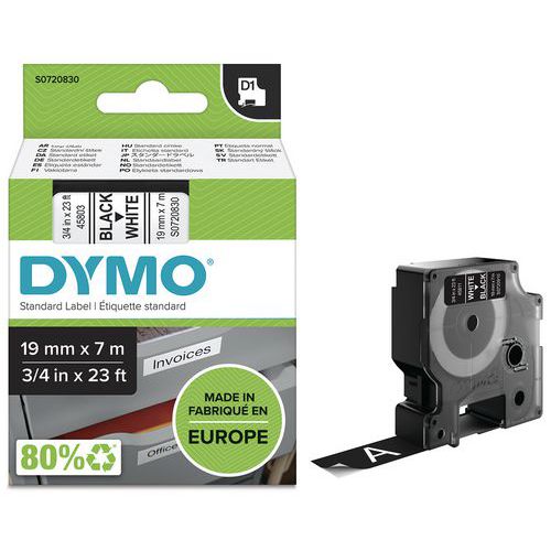 Caja de cinta D1 de 19 mm de ancho, Fondo color: Blanco, Tipo: S0720830, Cinta longitud: 7 m Caja de cinta D1 de 19 mm de ancho, Fondo color: Blanco, Tipo: S0720830, Cinta longitud: 7 m