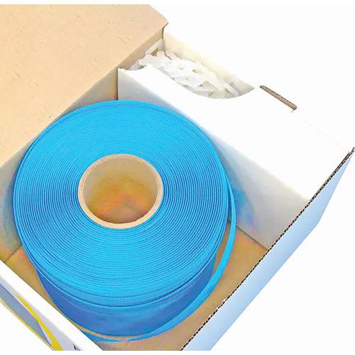 | Nombre del producto | Caja de flejado PP azul, Resistencia: 136 kg, Ancho: 12 mm, Espesor: 0.55 mm, Longitud: 600 m |