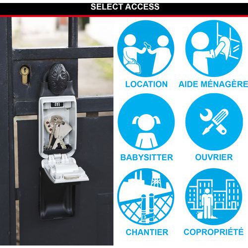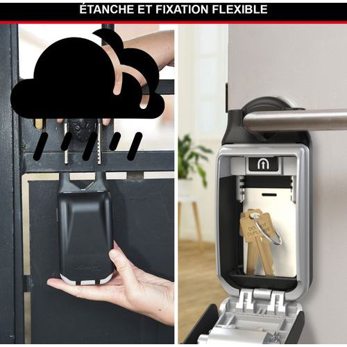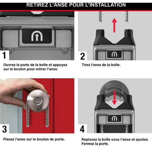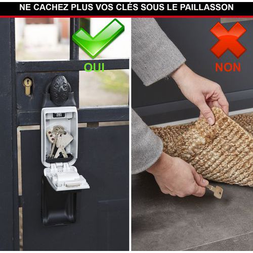 - Sin fijación a la pared, la caja de llaves se fija rápida y fácilmente a la manecilla de la puerta.