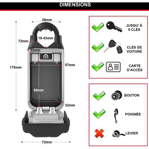 Caja de llaves de combinación n.º 5422, Material: Aluminio , Altura total: 170 mm, Anchura total: 79 mm